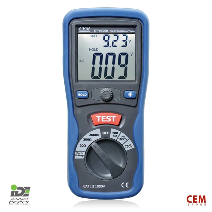 ارت سنج سه سیمه پرتابل و قابل حمل CEM مدل DT-5300B، جایگزین مناسبی برای نسل دستگاههای ارت تستر دستی است که برای اندازه گیری مقاومت ارتینگ در تجهیزات الکتریکی و همچنین اندازه گیری مقاومت زمین طراحی شده است.
