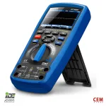مولتی متر اسکوپ دار DT-9989 برند CEM با دارا بودن عملکرد های اسیلسکوپ و صفحه نمایش TFT رنگی امکاناتی همچون نمونه برداری سریع در تبدیل A/D، دقت بالا، فهرست نویسی داخلی و ویژگی ضبط را دارا می باشد. یکی از مزایای مهم مولتی متر اسکوپ دار DT-9989 پشتیبانی از نرم افزار Meterbox iMM & Cloud Server برای انتقال داده های اندازه گیری شده برای ویرایش و ذخیره سازی به تلفن هوشمند مشتری می باشد.
