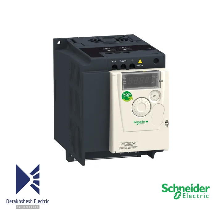 اینورتر اشنایدر ATV12 از انعطاف پذیری، قابلیت اطمینان و پیشرفته ترین فنآوری حامل های شار بدون حسگر در فضای بسیار کوچک استفاده می کند. اینورتر اشنایدر مدل ATV12 دارای یک درگاه ارتباطی یکپارچه، چرخ ناوبری کاربر پسند بر روی صفحه قالب و دارای یک Multi loader است که با ایجاد آسان و سریع تر کردن برنامه نویسی، تنظیمات را ساده می کند. همه این ویژگی ها با همه کاره بودن در مدیریت برنامه های کاربردی از ساده تا پیچیده، در سراسر صنایع و تجهیزات ممکن شده است.